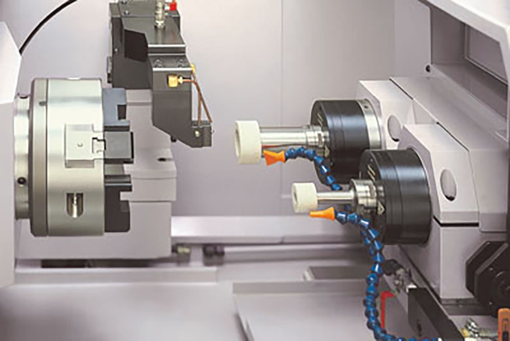 ・IGM15NCⅢ-2は2つのといし軸により段付き穴・端面・テーパ・外周加工をワンチャッキングで研削をすることが可能。同芯度や直角度の精度向上が図れます。