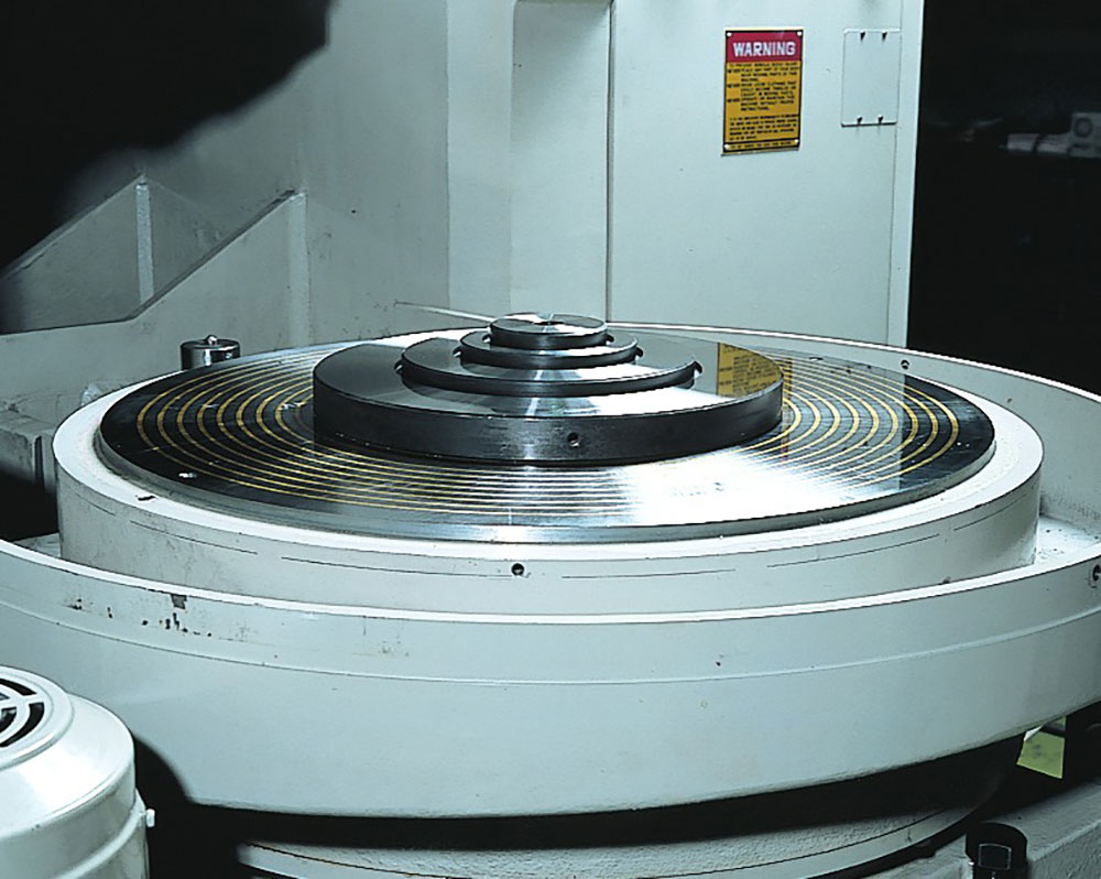 切込最小設定量0.1μm送りを実現する、独自の門型構造のロータリー研削盤