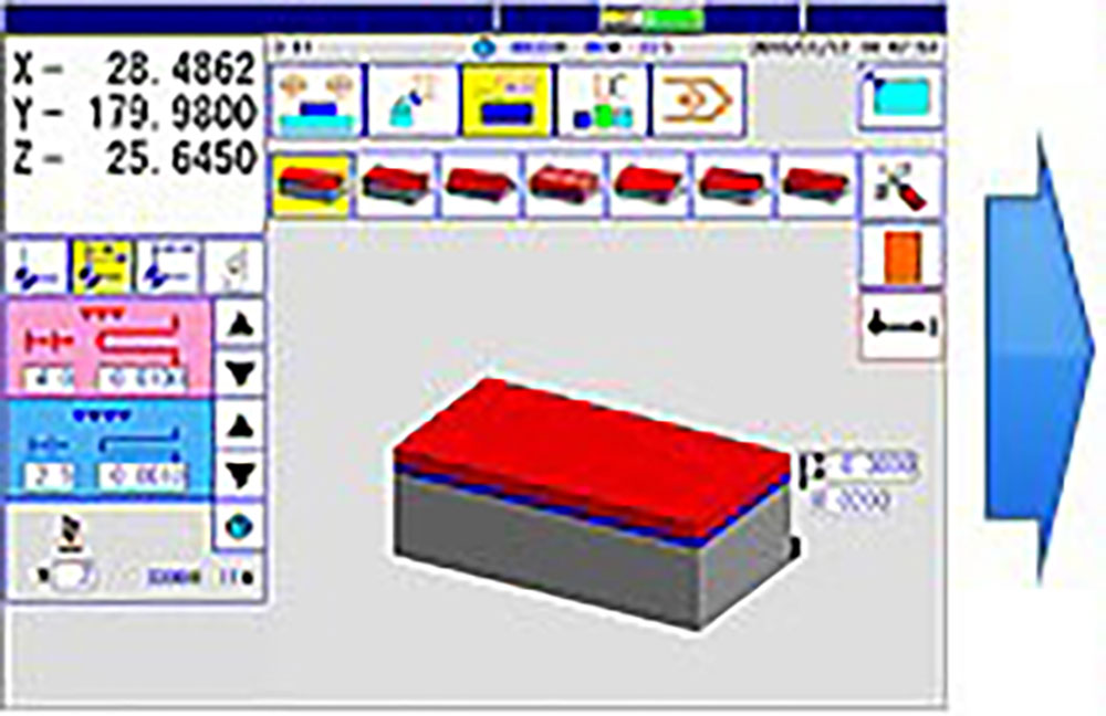 平面研削盤で初めて自動データ作成機能を搭載。総取り代と精研削取り代を入力、次にといし粒度を入力するだけで最適な研削条件とドレス条件を自動作成します。