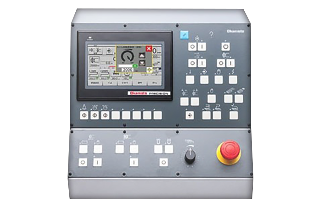 ・新機能、自動ドレス機能(粗加工⇒ドレス⇒精加工を自動化)とシフトプランジ機能等を追加。左右は油圧ハンドルによる汎用操作を残したまま、研削の自動化を実現しました。