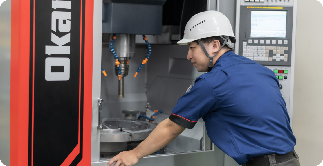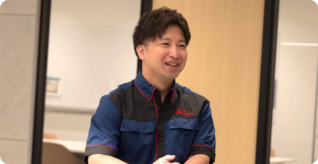 研削盤を扱う機会があり興味を持つようになりましたが、その中でも岡本の平面研削盤は国内シェアトップクラスで、製造から販売まで一貫して手掛ける総合砥粒加工機メーカーとして、自分のスキルアップが図れると感じました。入社後は、機械操作だけでなく展示会への参加など様々な経験を積むことができ、少しずつ自分のスキルが身についている実感があります。