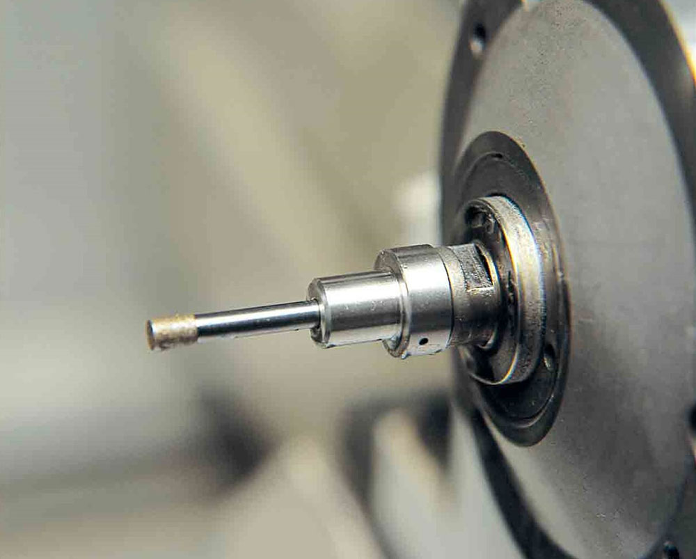 業界ではめずらしいセンタ穴研削専用研削盤。 円筒加工物のセンタ穴の正確な基準出しで精度向上に貢献します。